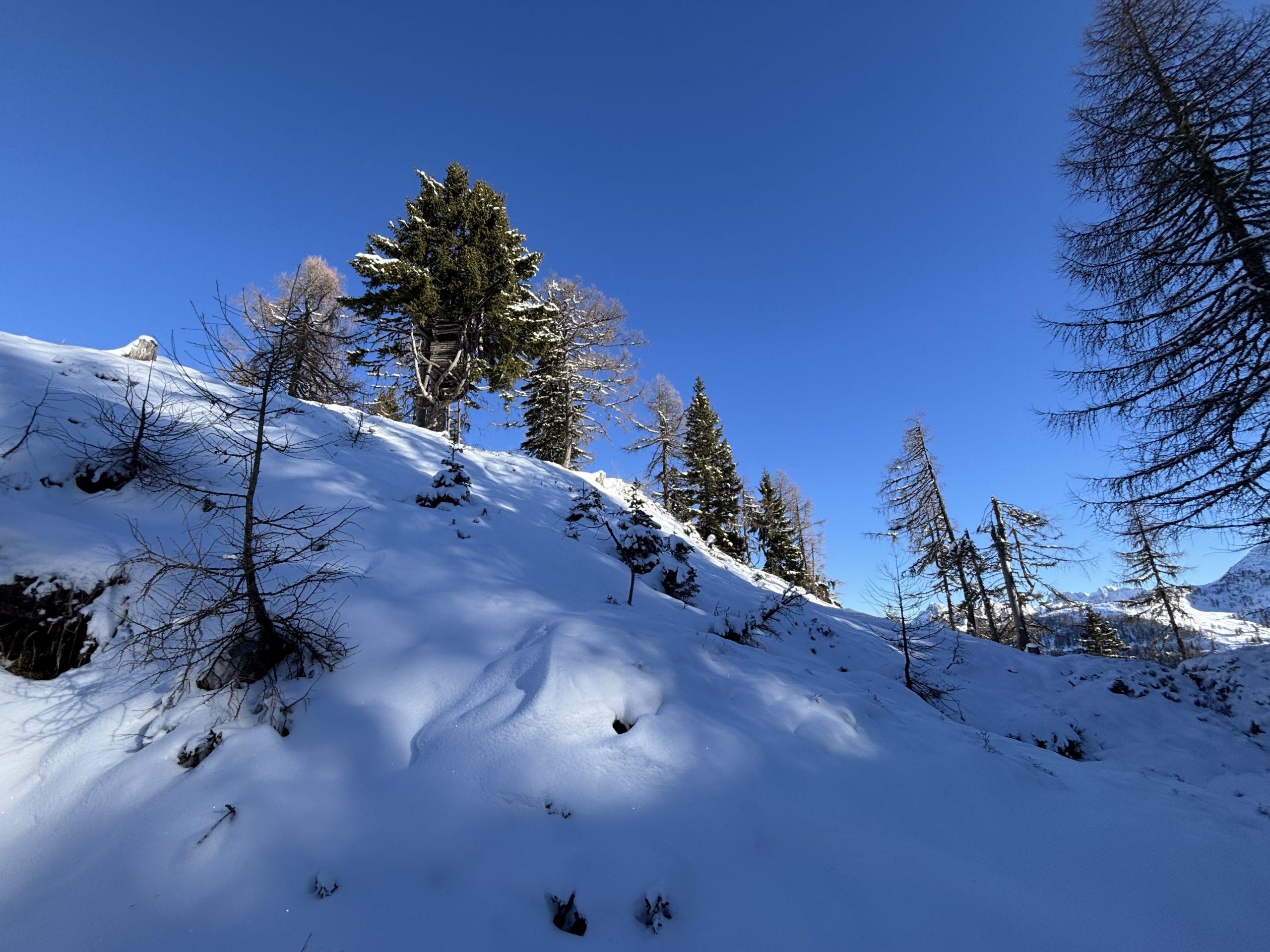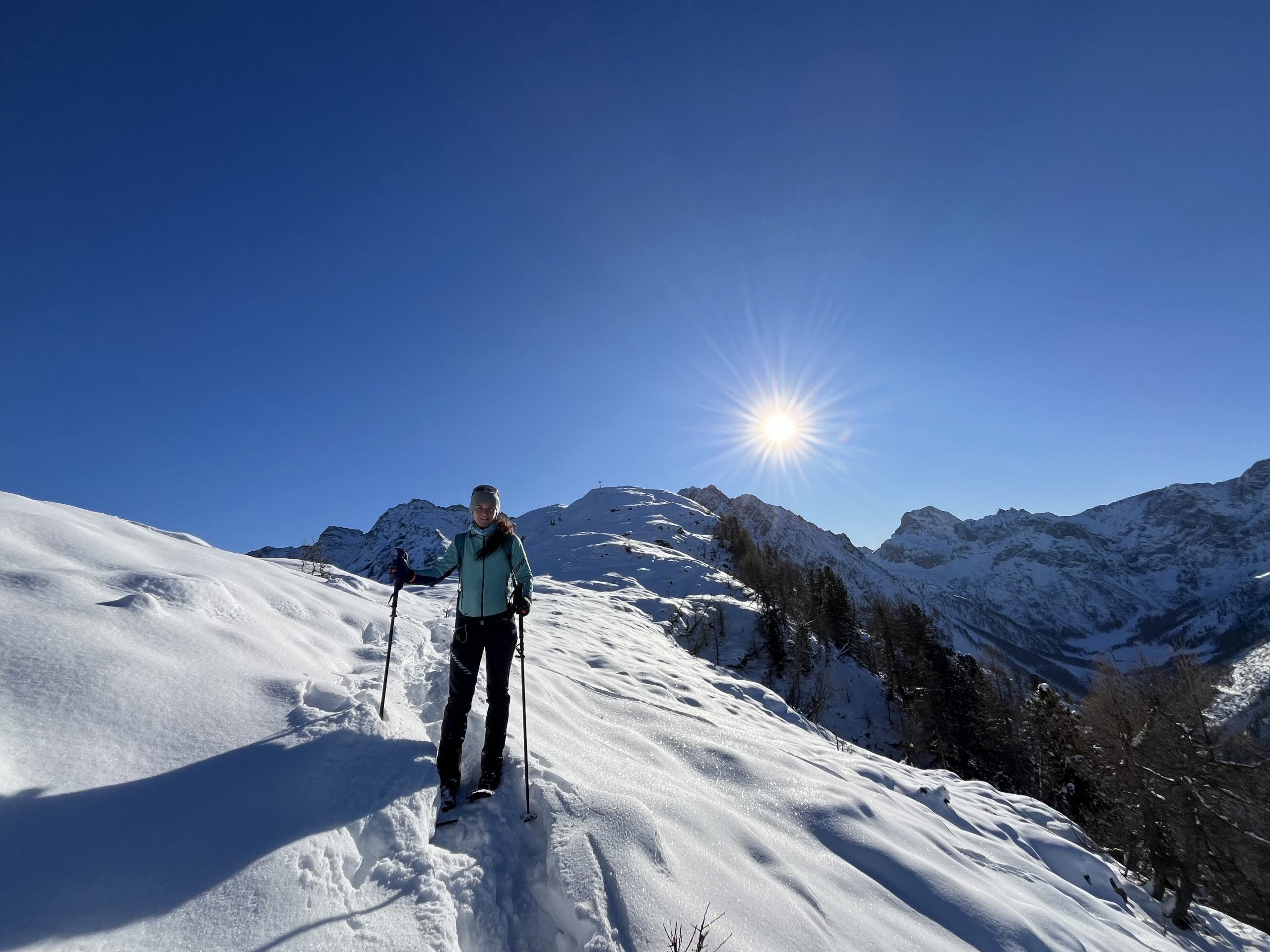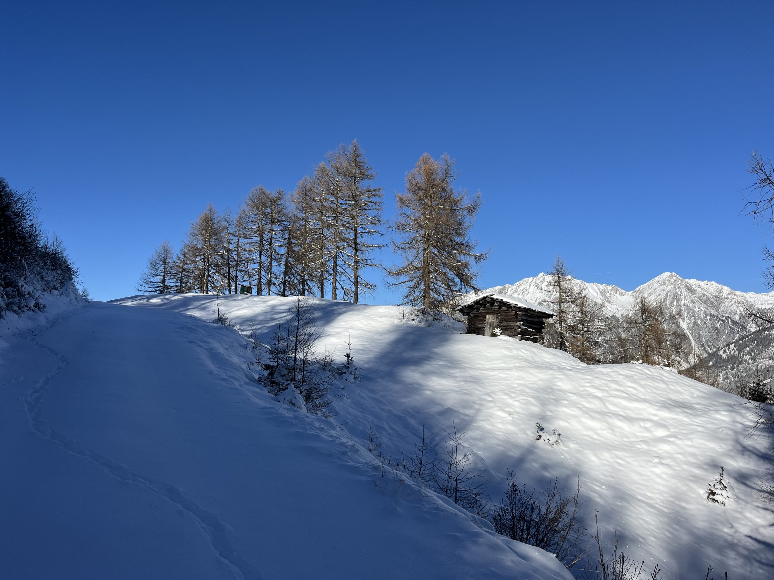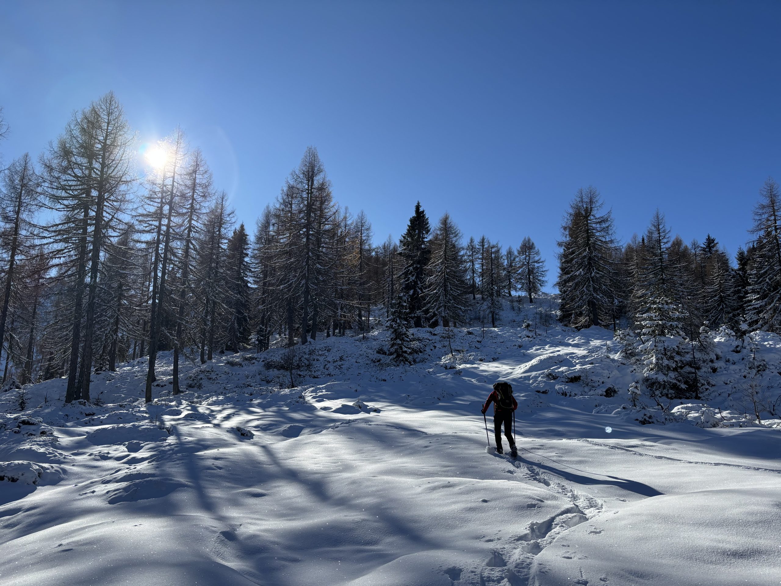 Für den Abstieg benötigst du ca. 2 Stunden – somit ergibt sich eine Gesamtzeit (reine Gehzeit, ohne Pausen) von ca. 5,5 Stunden für die Schneeschuhwanderung auf den Gamskofel.