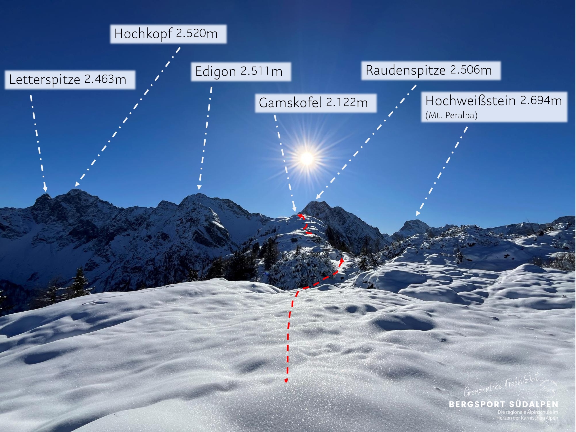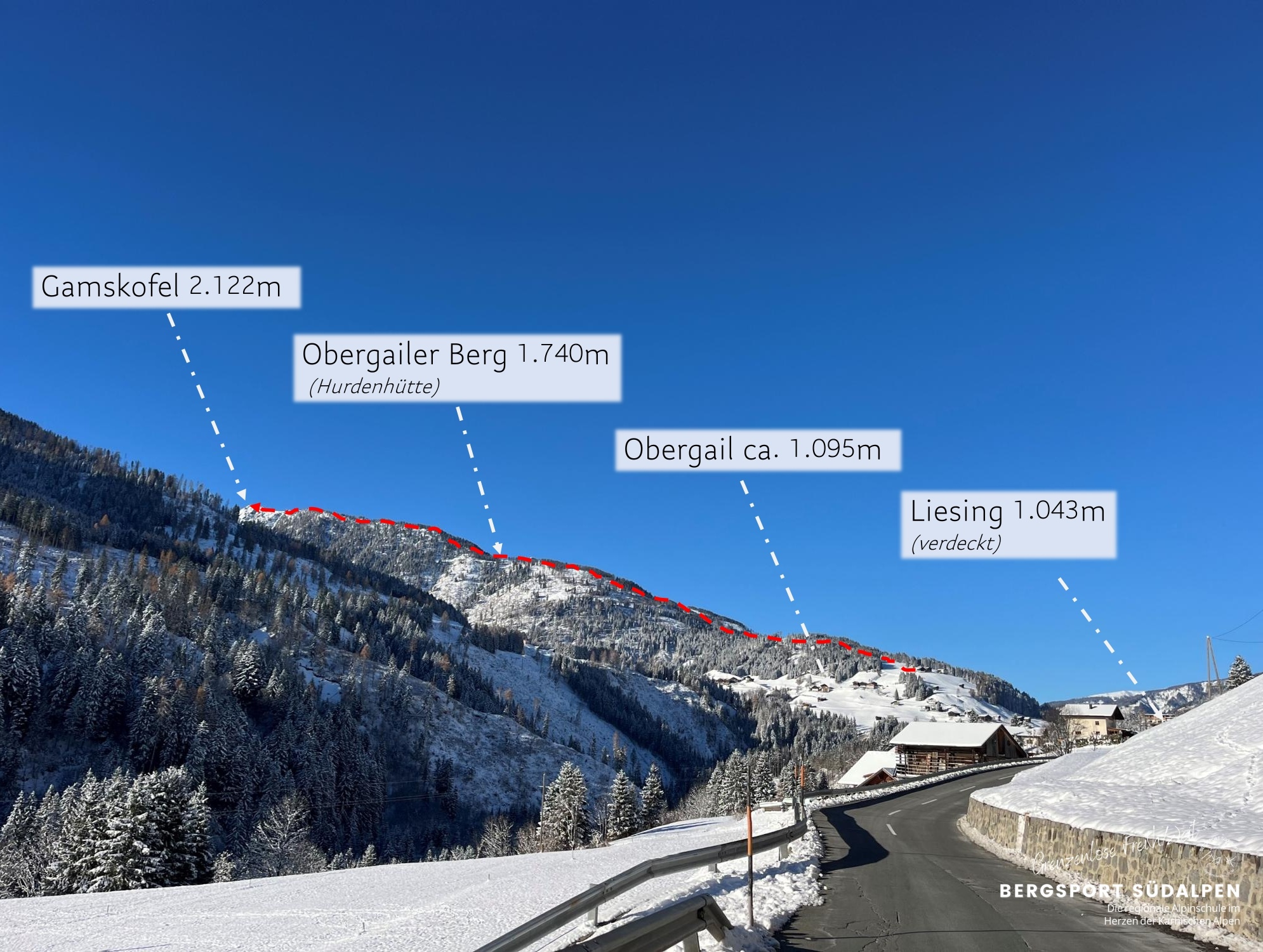 Diese idyllische und sehr lohnende Schneeschuhwanderung führt in rund 3,5 Stunden Gehzeit (je nach Parkmöglichkeit) von Obergail (Lesachtal) zum Gipfelkreuz des Gamskofels.