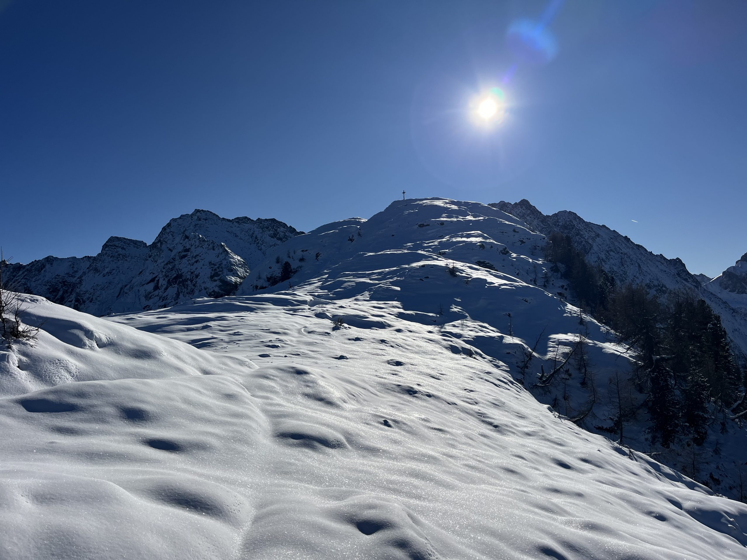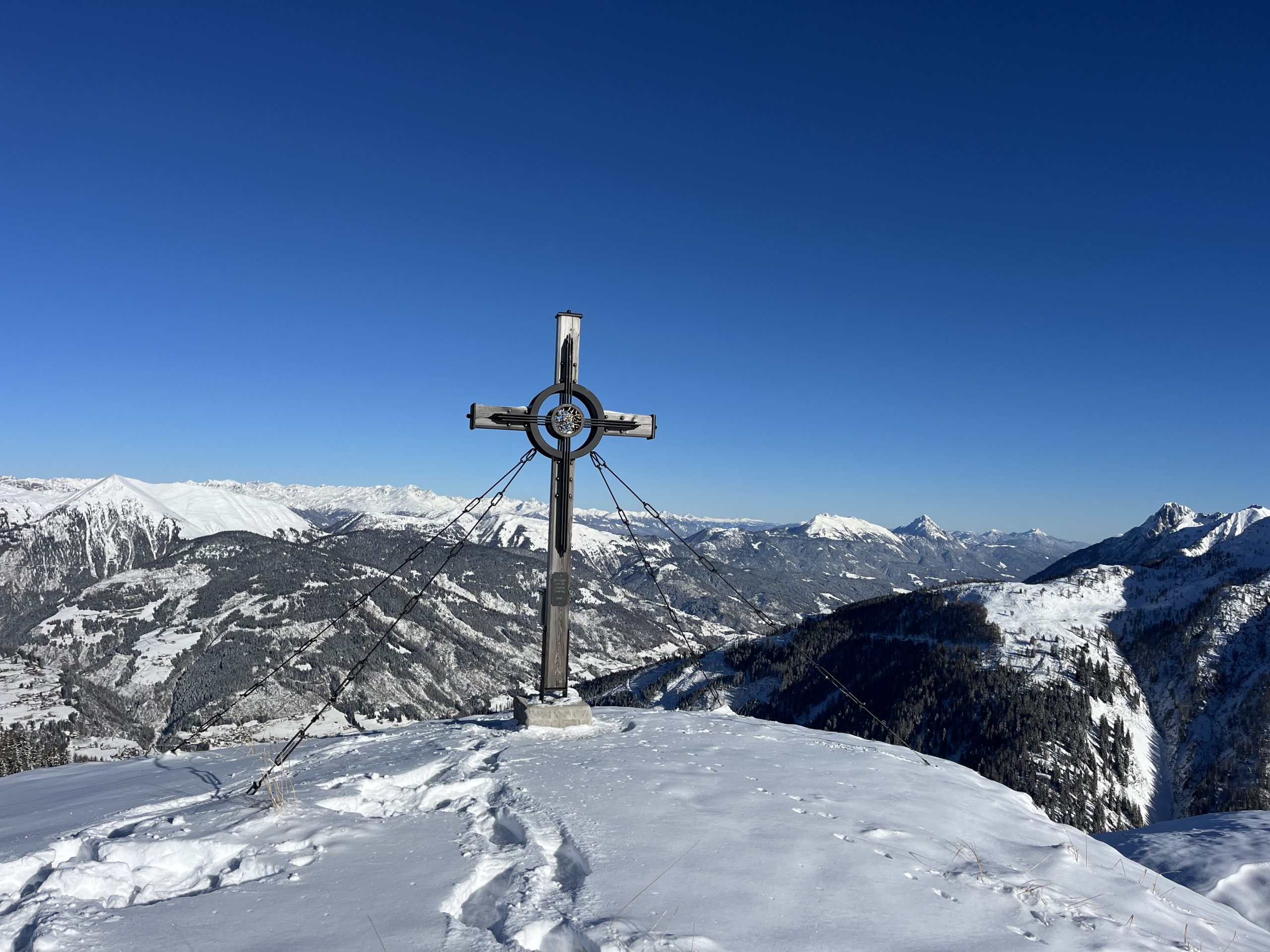 Du erreichst nach ca. 3 1/2 Stunden (reine Gehzeit, ohne Pausenzeit) auf 2.121 m das sehr schöne Gipfelkreuz des Gamskofels.